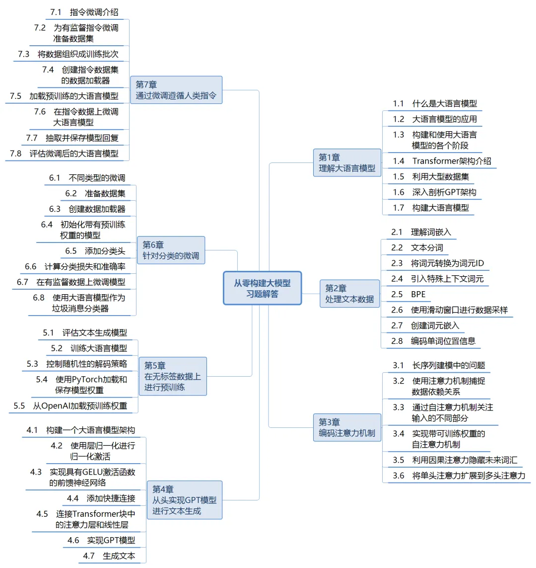 书里从数据准备到预训练、再到微调任务(比如文本分类、指令跟随)都有涉及。它不会让你变成 LLM 大神,但能给你一个比较完整的开发流程印象,让你至少知道一个模型从头到尾都经历了什么。这对你之后训练自己的大模型很有帮助。我挺喜欢这一点,因为它并不只关注模型本体,而是关注整个实际使用的链条。