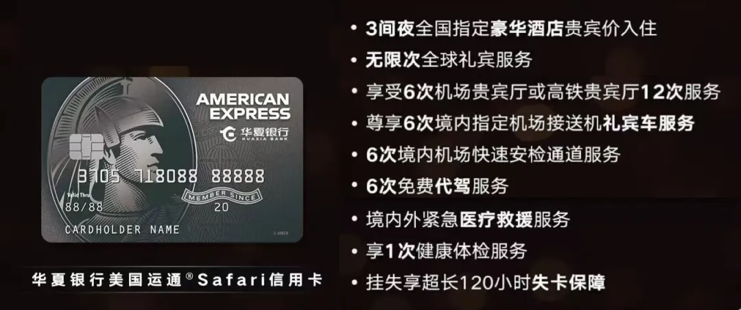 · 卡组织:美国运通卡 经典系列 Safari卡权益