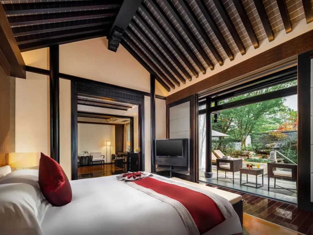 酒店初建时园林就造价2亿,典型的徽式大宅与江南园林结合。扎根于约15000亩原生态林地之上,环境优美,空气清新。