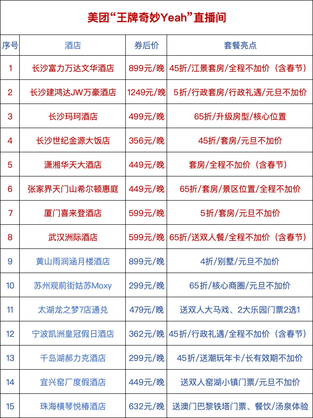 美团酒店直播华中专场,酒店套餐4折起,含多地套房别墅,元旦周末不加价,速抢!