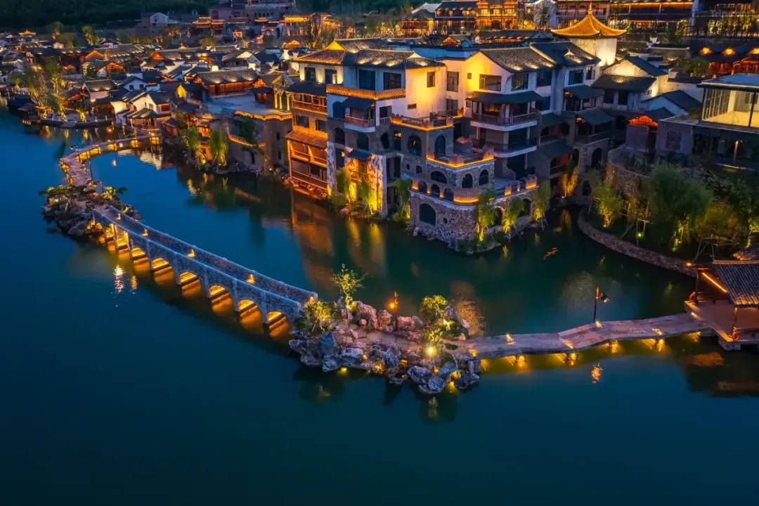 酒店在窑湖小镇景区外围,入住期间享景区无限次入园和24小时免费接驳车,另外酒店还有汤泉可以泡。