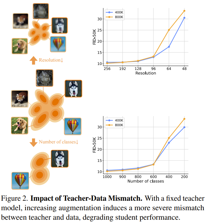 所谓的「教师-数据不匹配」,就是指这位大师现在的水平和风格(教师模型的真实生成分布)已经远远超出了那本旧画册的范畴(静态数据集)。如果强行让徒弟(学生模型)死盯着这本过时或甚至不对版的画册去学,而不是直接去观察大师现在是如何下笔的,那么徒弟不仅学不到大师现在的真本事,甚至会被画册里的错误误导,从而从根本上限制了其潜力。