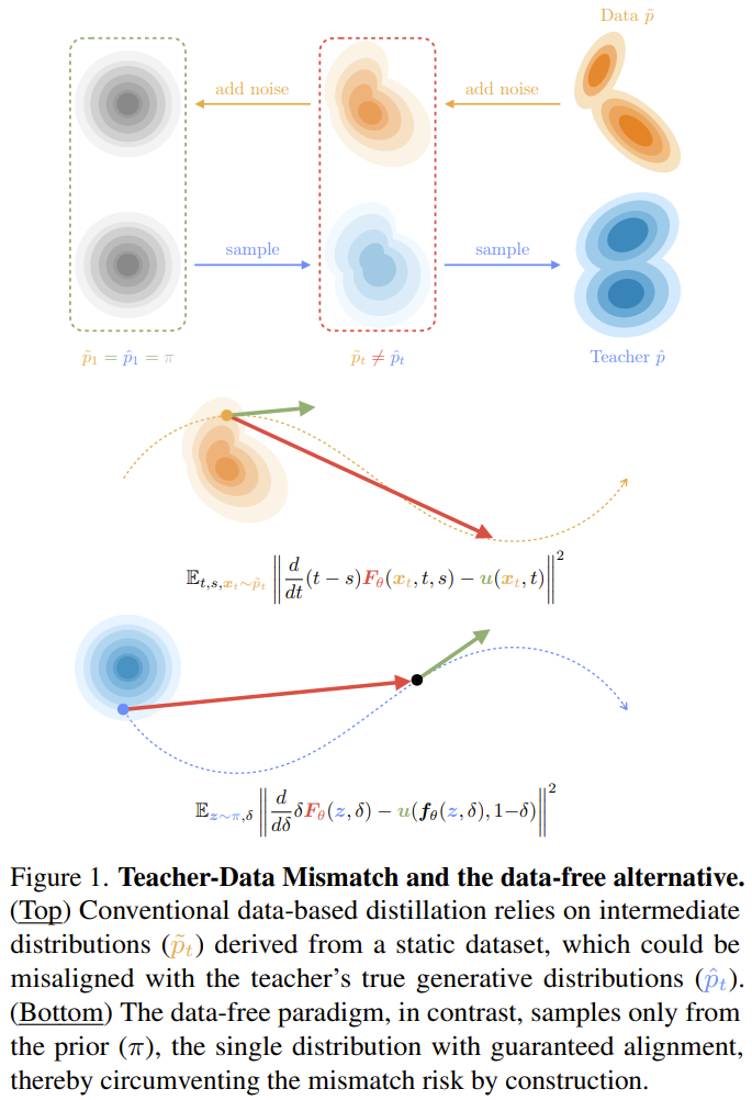 论文作者敏锐地发现,尽管教师模型在生成过程中可能偏离静态数据,但其生成轨迹的起点始终锚定于【先验分布(Prior Distribution)】。这一发现成为突破口:如果能利用这个始终对齐的基点,就能规避对数据的依赖。