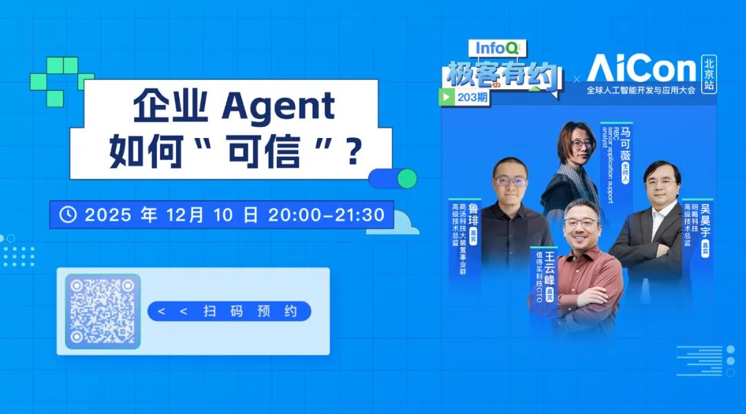 从 Chatbot 到 Action Agent,企业级落地最怕什么?是长程推理的显存天价成本,还是业务逻辑的“死循环”风险?如何利用 MCP 协议解决接口调用的“信任危机”?本次直播集结值得买、商汤、明略三位技术专家拆解可信 Agent 的构建之道。