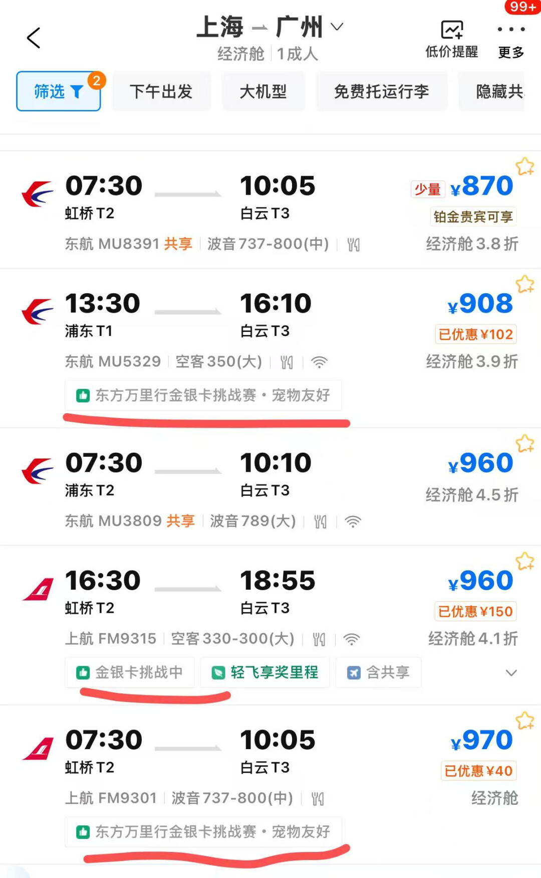 需要通过携程渠道预订机票,千万注意认准带有“金银卡挑战赛”价格标签的机票: