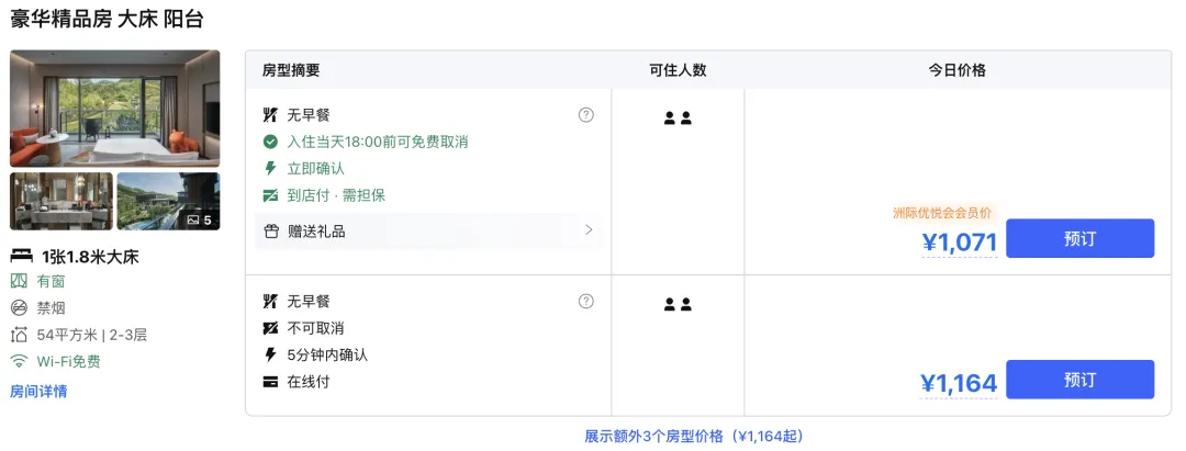 套餐用满1998-200的券,券后1149元/晚。园景房面积61平米,日历房价近2000元/晚,套餐不到6折,周五不加价。