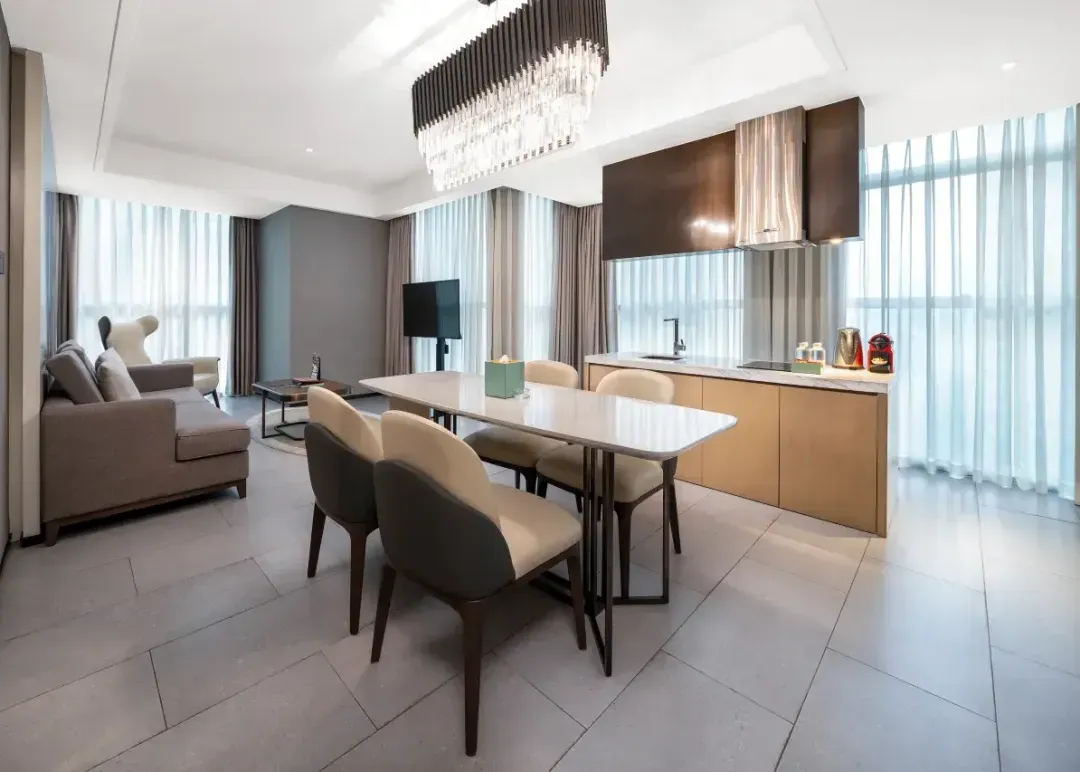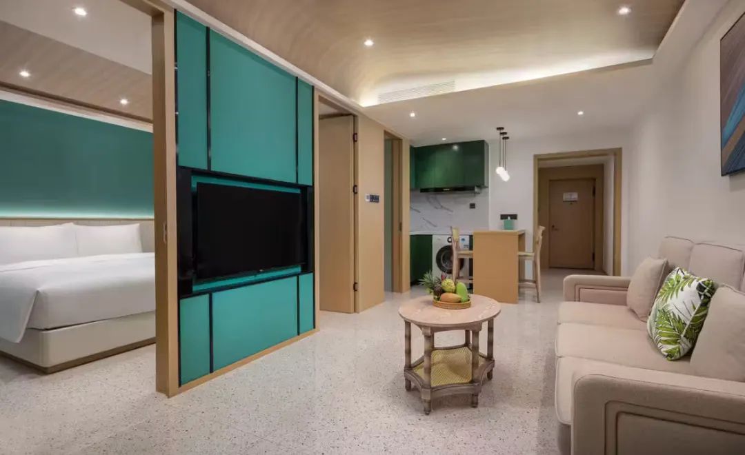 这家颐华是全套房的设计,套餐给到的第三级房型,60m²的豪华套房,房间是标准的一室一厅,居住体验非常舒适。