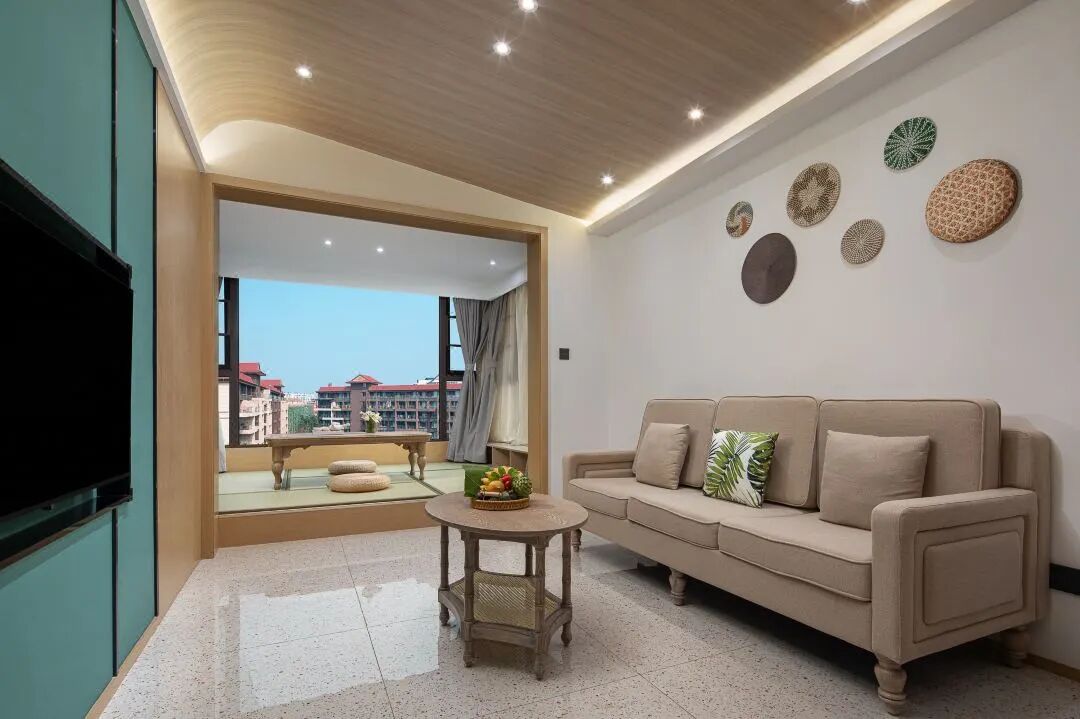 这家万达颐华刚开业3年,是万达旗下的中高端生活方式品牌,酒店以东南亚风情为基调,承载傣族文化元素,同时融合法式浪漫设计,无论长住或旅居,硬件和服务的品质都有保障。
