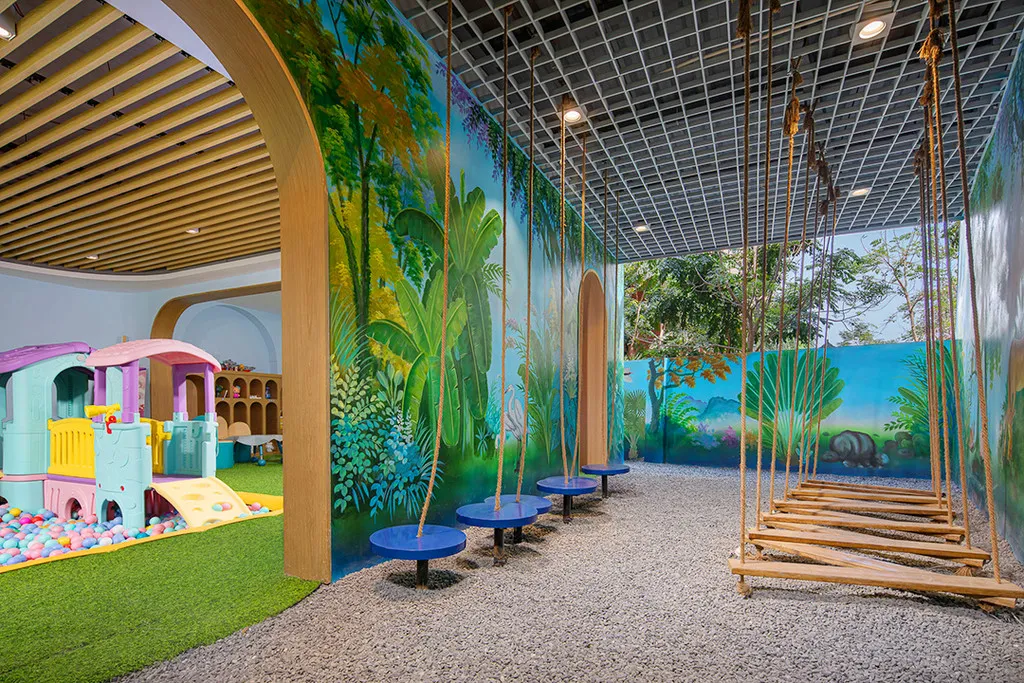 亲子家庭寒假来长住也相当合适,酒店有大型儿童乐园(儿童玩学俱乐部),包括小小工程师、攀岩、滑梯、蹦床、跑道和海洋球,彻底实现吃喝玩乐住,一站式遛娃。