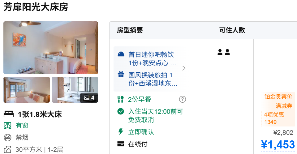 此外西溪十里芳菲还有2晚的套餐,性价比更高:杭州西溪十里芳菲主题度假村落2晚+西溪湿地门票+芳菲水上巴士接泊船2位+旅拍 - 券后1299元(拍1份用-100券)