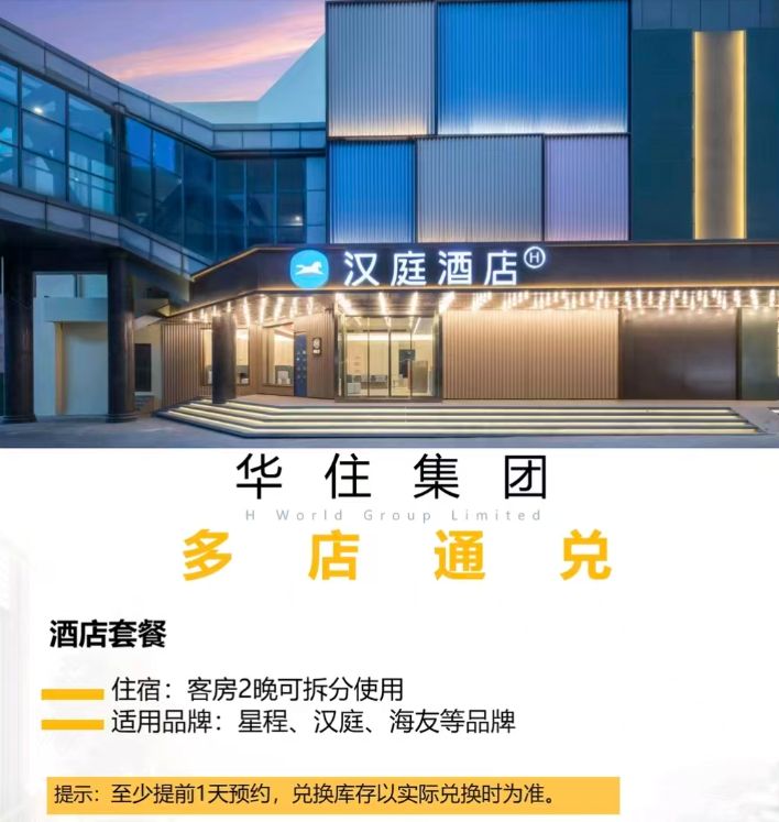 华住酒店全国2晚可拆通兑 - 253元起