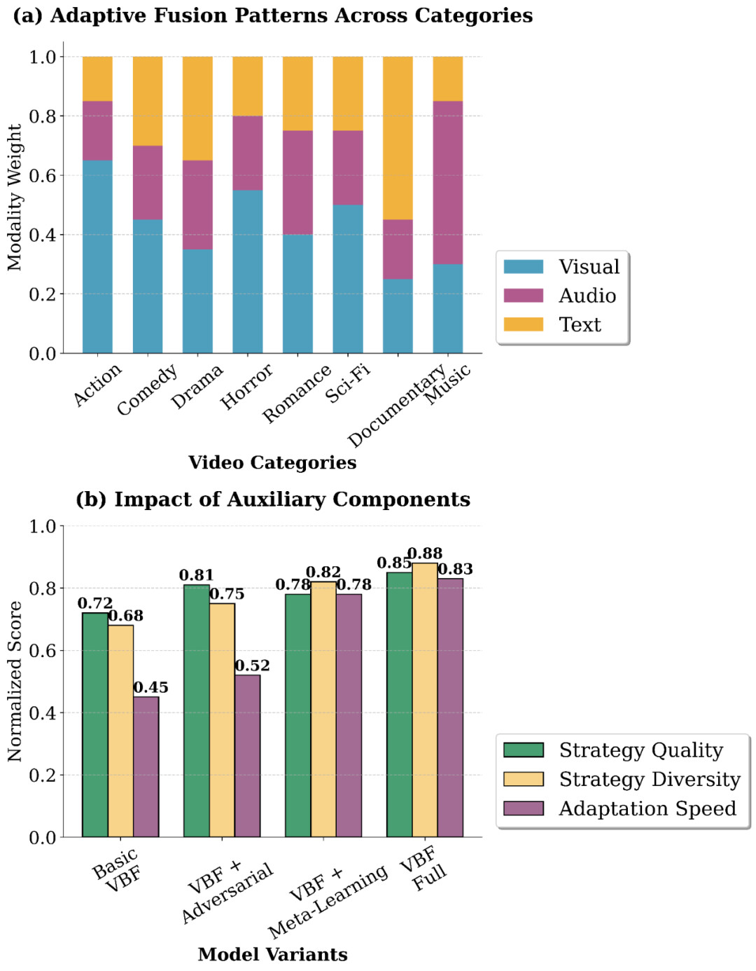 它不是简单地假设所有视频都一样,而是根据视频的语义类别(如动作片、音乐片、纪录片等),动态调整融合策略的先验分布。模型将视频划分为