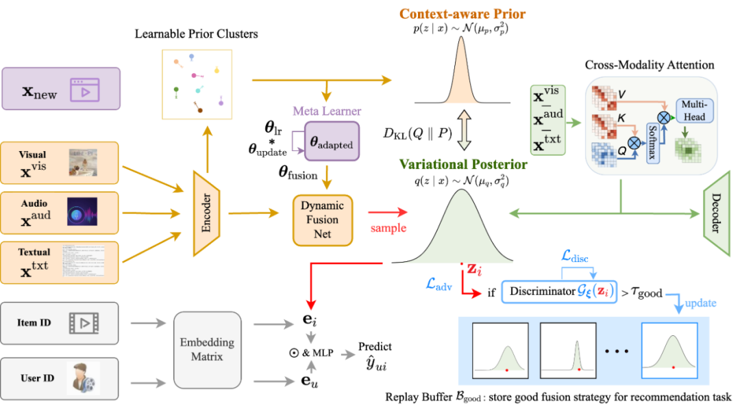 近日,北京航空航天大学和北京邮电大学联合提出了一种全新的概率化框架—VBF++(Variational Bayesian Fusion with Context-Aware Priors and Recommendation-Guided Adversarial Refinement)[1]。