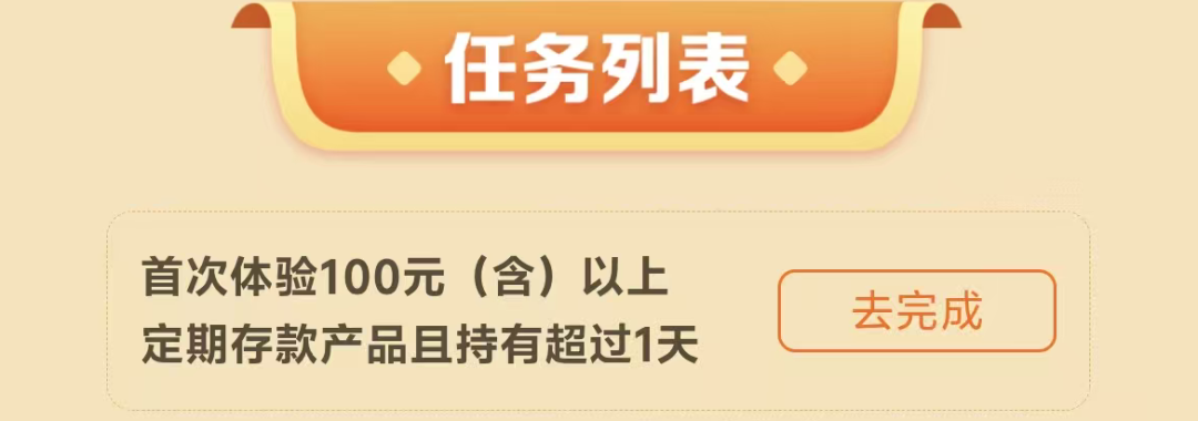 ②点击“去完成”新开一笔100元以上的定活两便存款,存满1天就行