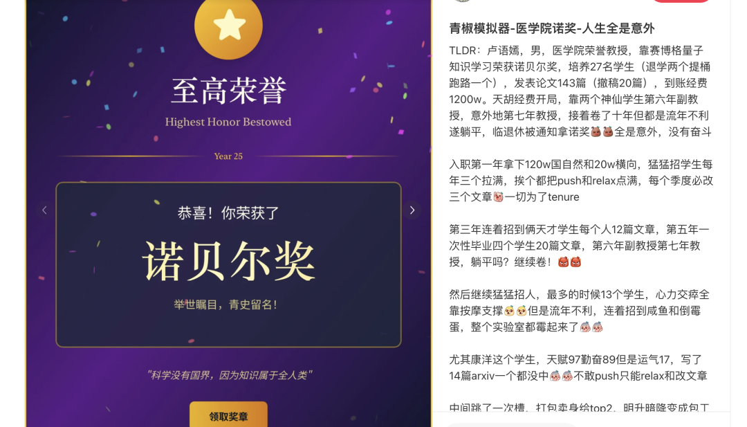 《青椒模拟器》爆火!AI助你体验学术人生的酸甜苦辣,从讲师到院士!