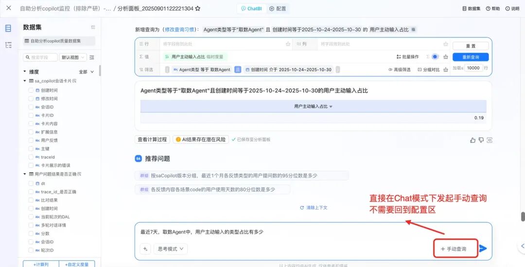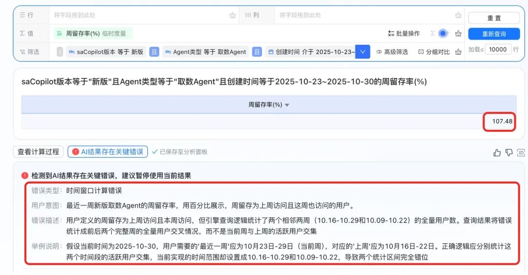 接着,针对AI模型可能出现的“幻觉”及结果的准确性问题,文章提供了多路径的“结果验证”方式。用户不仅可以通过AI自身的校验、产品配置的可视化来验证结果,还可以直接查看生成的SQL或DAL代码进行最专业的核对。