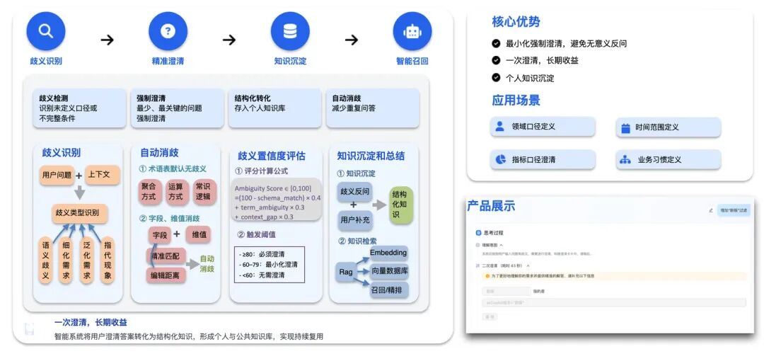 其次,为解决信息对齐问题,文章引入了“反问澄清”机制。当AI模型对用户指令存在不理解之处(如“新版”、“取数Agent”),它会模拟人类对话进行反问,主动寻求更多信息来消除歧义。这些被澄清的信息会被存储到知识库中,以便后续使用时无需重复对齐,随着使用频率增加,AI助手会变得越来越“懂你”。