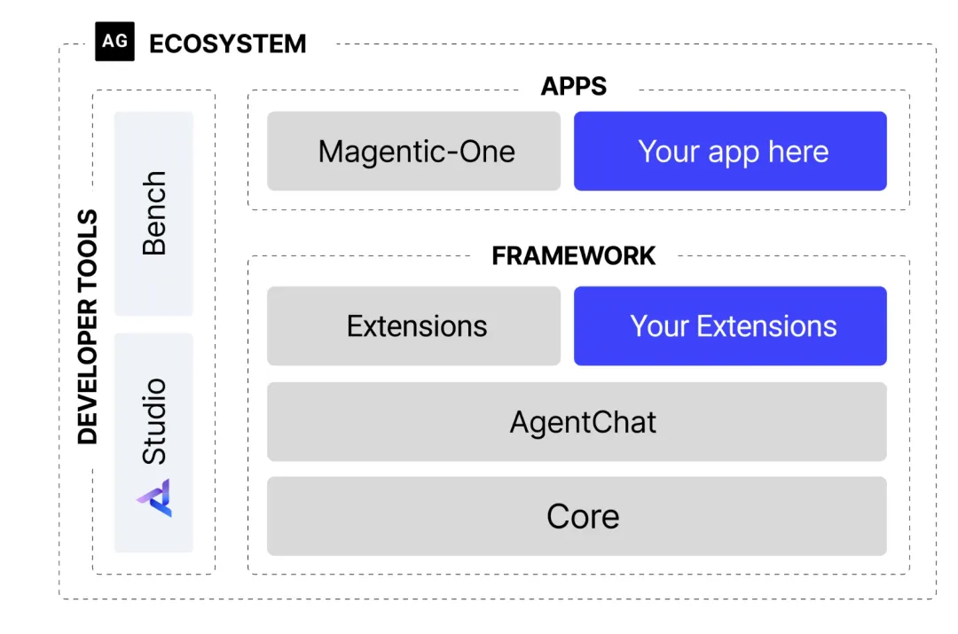 autogen-core:作为框架的底层基础,封装了与语言模型交互、消息传递等核心功能。它的存在保证了框架的稳定性和未来扩展性。