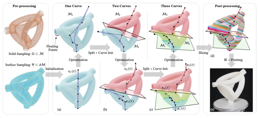 这项工作的核心突破,在于摒弃了传统切片算法中基于离散平面的几何计算逻辑,转而构建了一个基于连续曲线的微分优化框架。