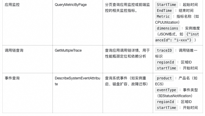 为实现外部数据的动态查询能力,系统将日志查询、指标检索、链路追踪等监控工具封装为MCP服务,并部署于函数计算平台。MCP 作为一种标准化接口协议,使大模型在推理过程中可按需调用这些工具,实时获取最新监控数据,避免静态上下文带来的信息滞后问题。同时,用户CMDB中的应用拓扑关系(如应用与组件、应用间依赖)也被封装为 MCP 服务,使大模型在分析过程中能够理解系统架构上下文,提升根因推断的准确性。通过 MCP 机制解耦大模型与底层运维系统,既保障了数据查询的灵活性、实时性与可扩展性,又提升了故障分析的上下文感知能力。