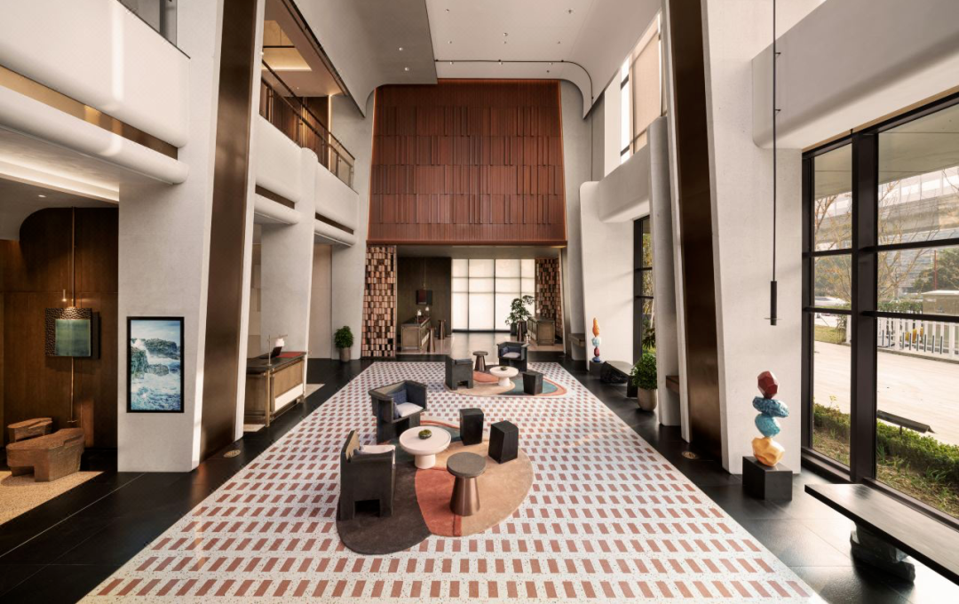 室内设计由知名事务所HBA打造,灵感源于苏州御窑金砖制作工艺,采用泥土、原木等自然材质,设计感在线。