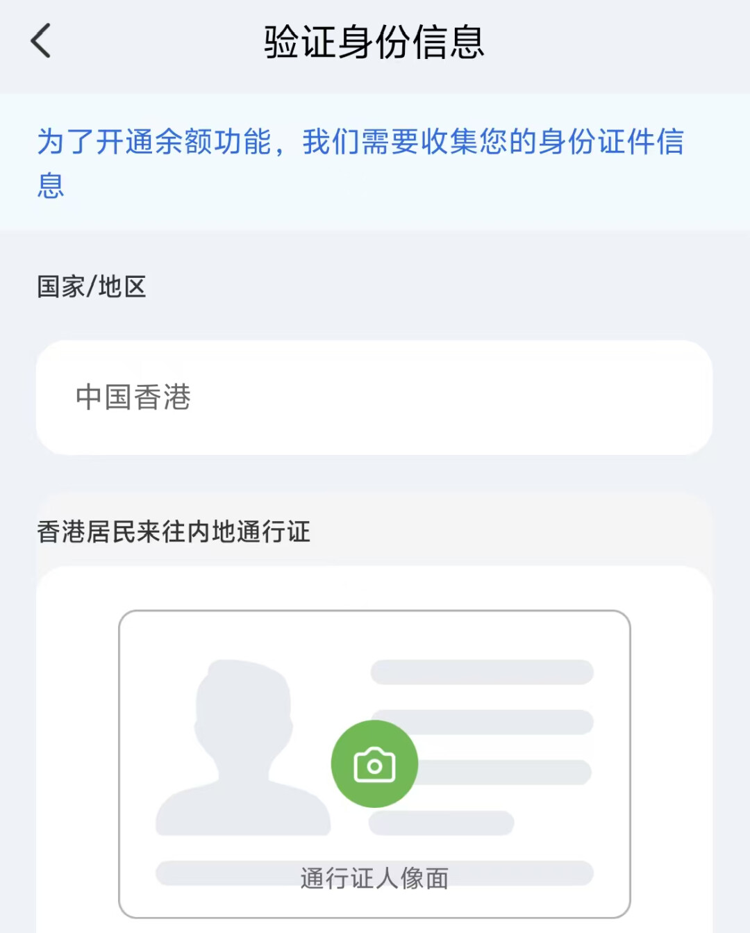 我们再来看app的“旅行通余额”功能。点击“开通”后,首先会进入到“验证身份信息”环节,需要选择自己的“国家/地区”,并且需要上传身份证件进行验证!