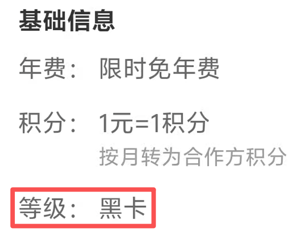 你没看错,这就是卡片的全部权益。单纯看权益,这顶多只是一张金卡或者小白金级别的卡片对吧?但是在申请页面中,赫然写着“等级:黑卡”。就问你服不服?