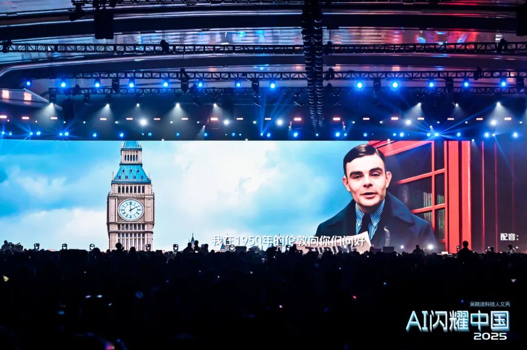 (播放 AI 生成的视频)你们好,我是艾伦·图灵,我在 1950 年的伦敦向你们问好,五年前人类发明电脑,它的体积大得像一间房子,单张卡片可存储 960 个 byte,运算速度是每秒 5000 次加法运算。不过现在的我确实在想一个问题,也许它真的很荒唐,不过我还是想提出来,机器会思考吗?