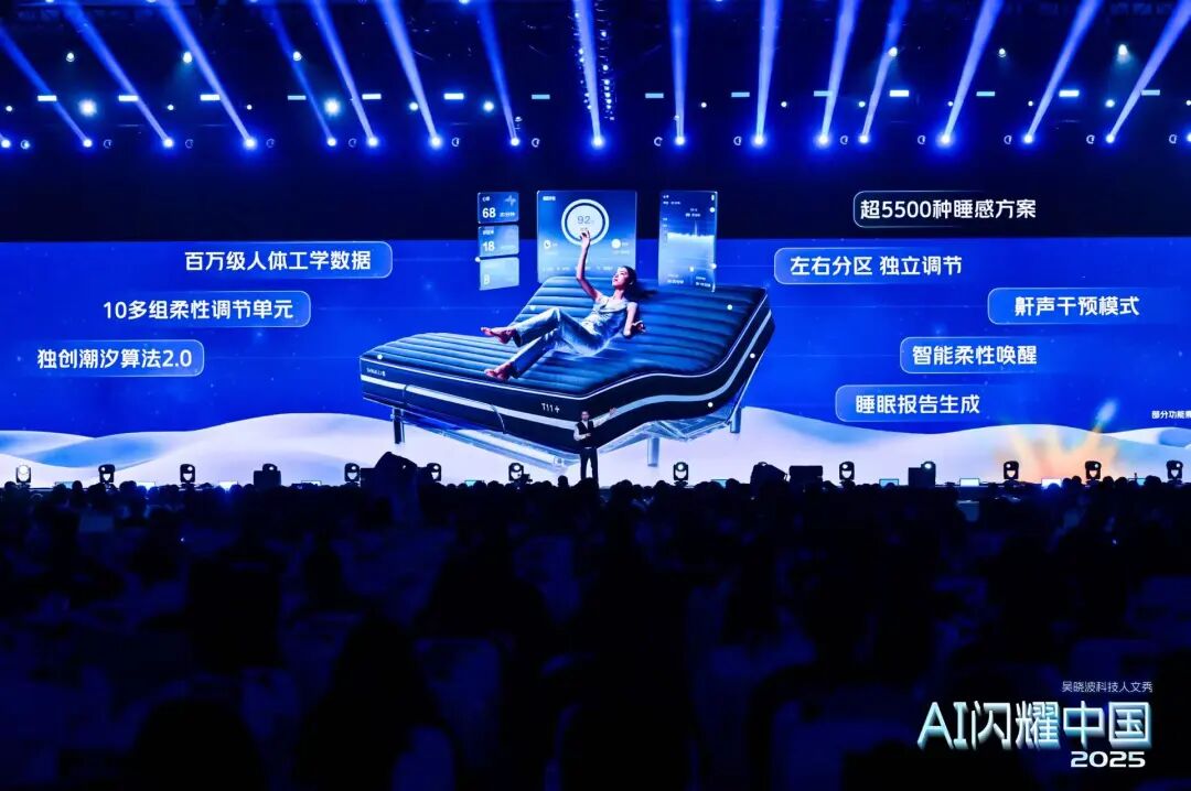 我第一次去慕思大概是 2014 年,当时他们检测了我的睡眠,那是全国第一款智能床垫,这套系统我记得当时最贵要卖 100 万元人民币,全中国的第一个智能的床垫,今天这个床垫最便宜的一款大概卖不到 4 万人民币,在过去的十年里面,他们建构了百万级的人体工学数据,10 多组柔性调节单元,他们独创了一套潮汐算法...... 最关键的是,通过它们,它形成了超 5000 多种睡感方案。
