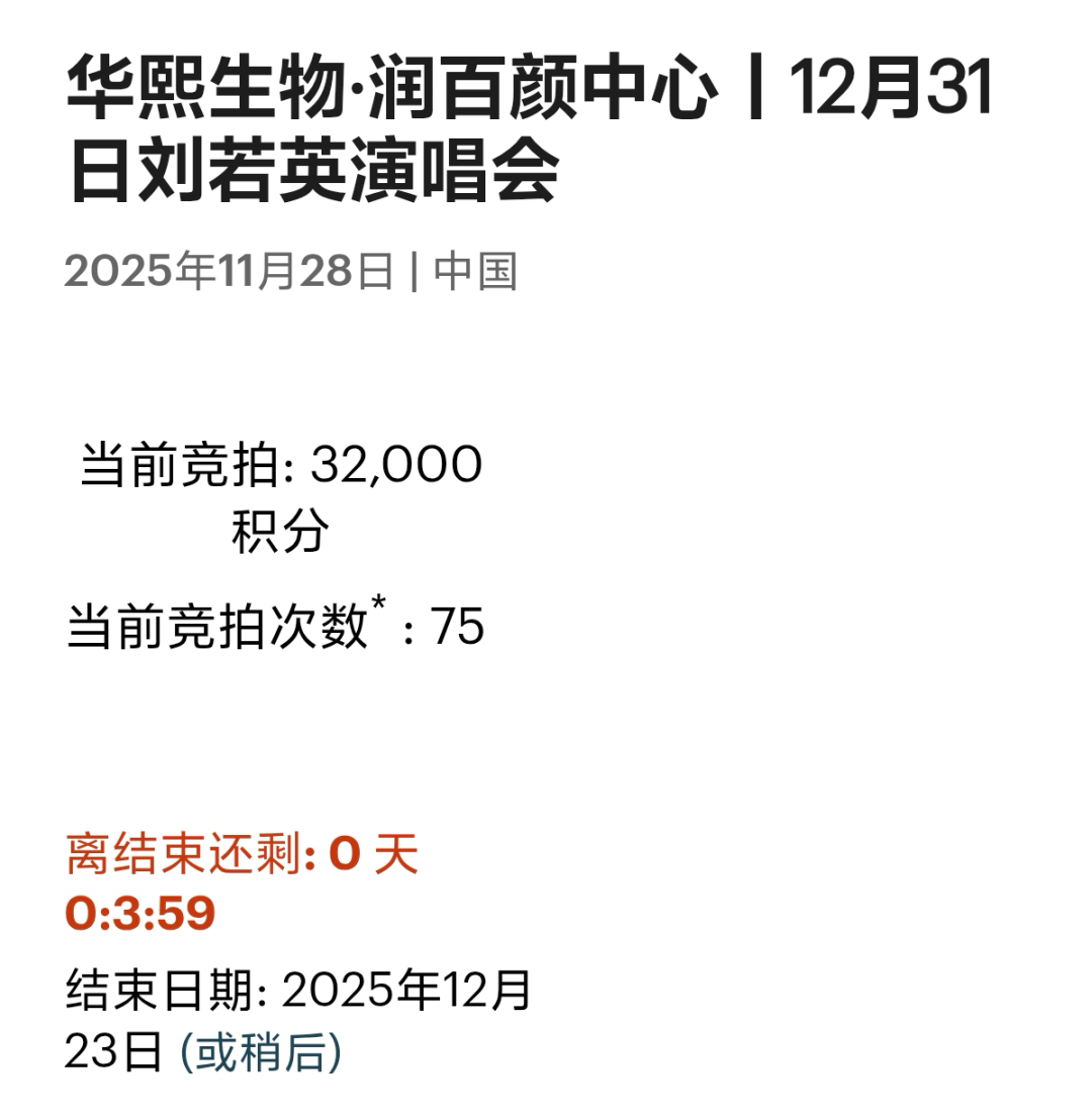 比如这次跨年演唱会,共有70多次出价,延时了30分钟,才以33000分/套的价格结束竞拍。