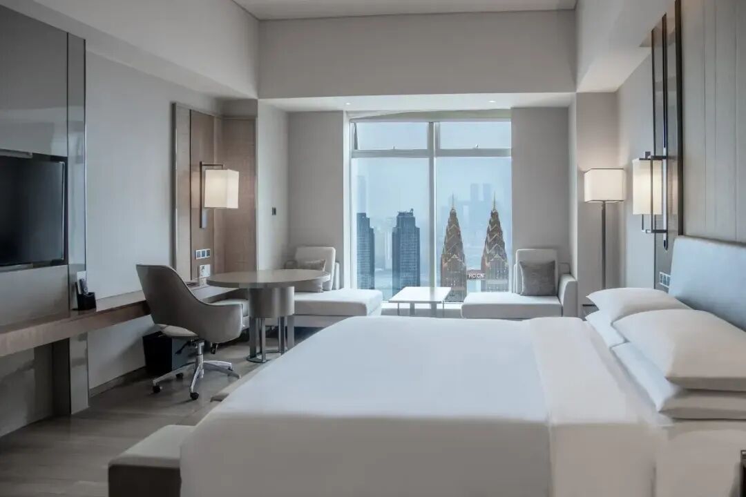 酒店位处江北嘴核心区域,居于51-66层高空,坐拥两江交汇奇观、千厮门大桥流光、朝天门码头、来福士广场等标志性美景。