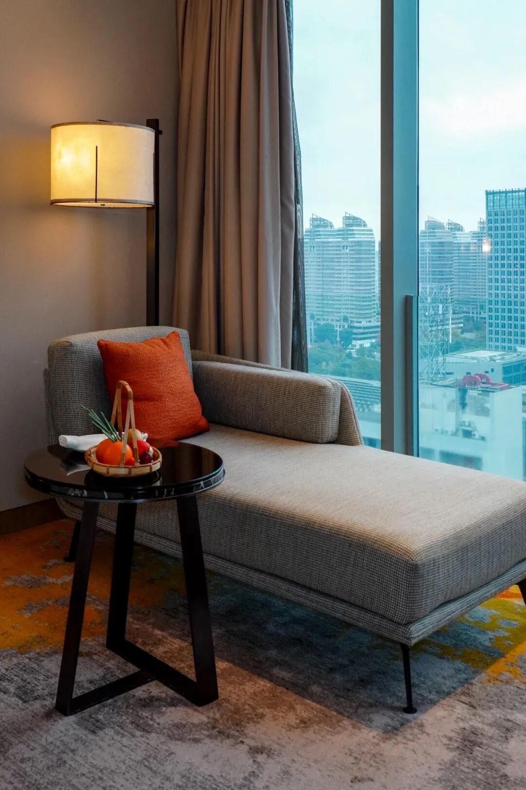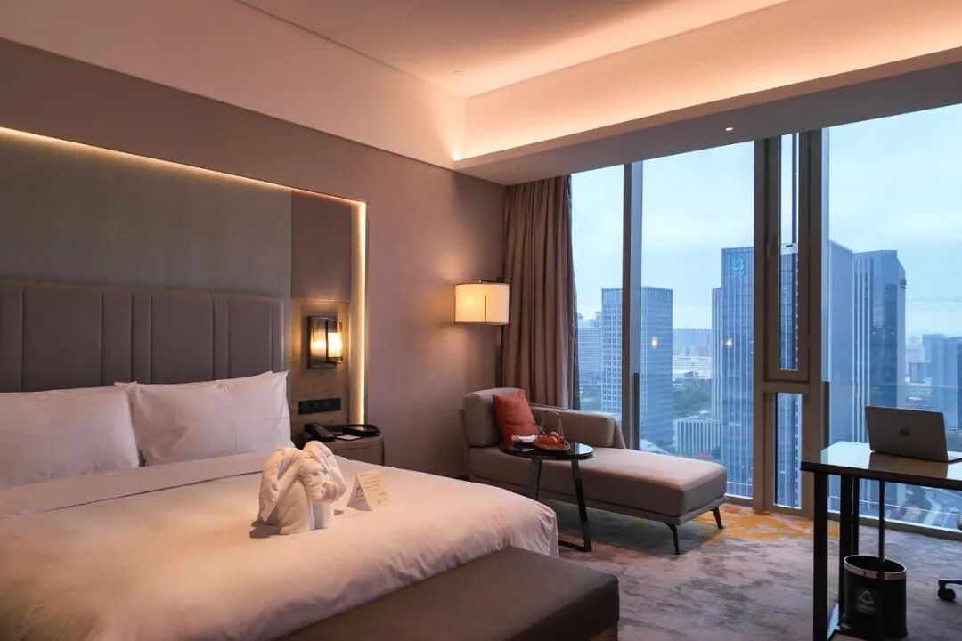 这次我入住的是行政房,全景落地窗从地板延伸至天花板,将城市天际线尽收眼底。