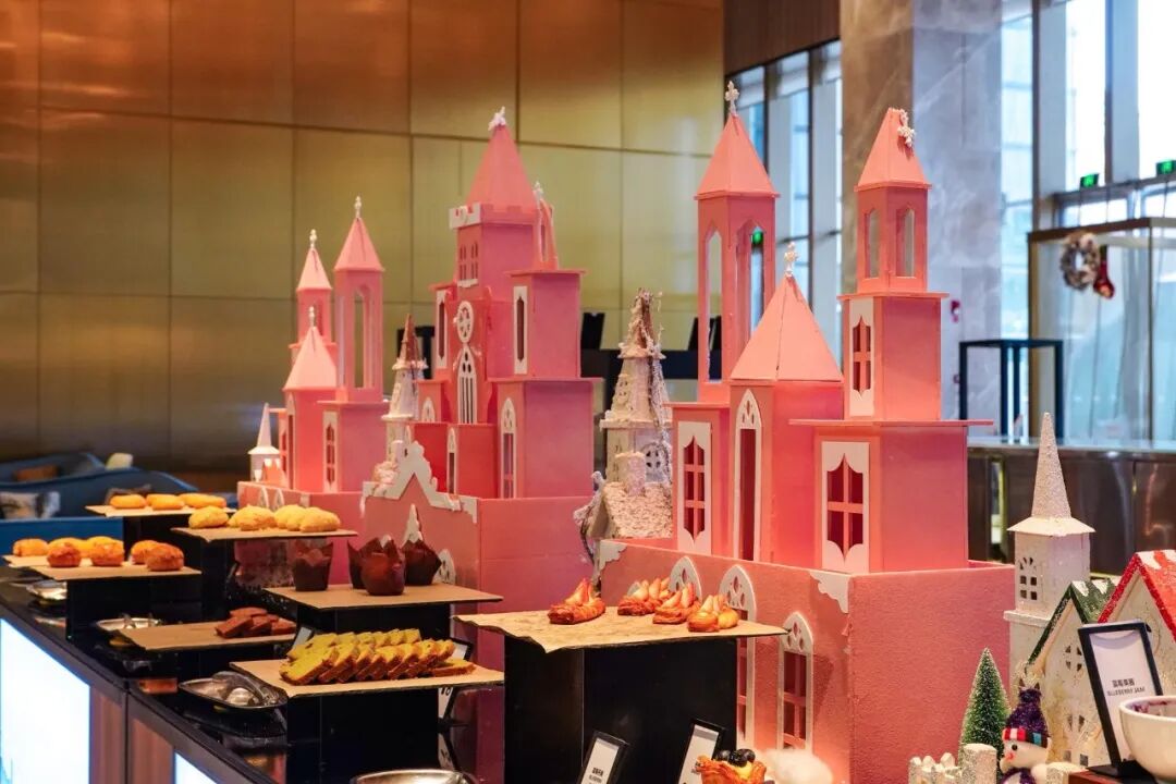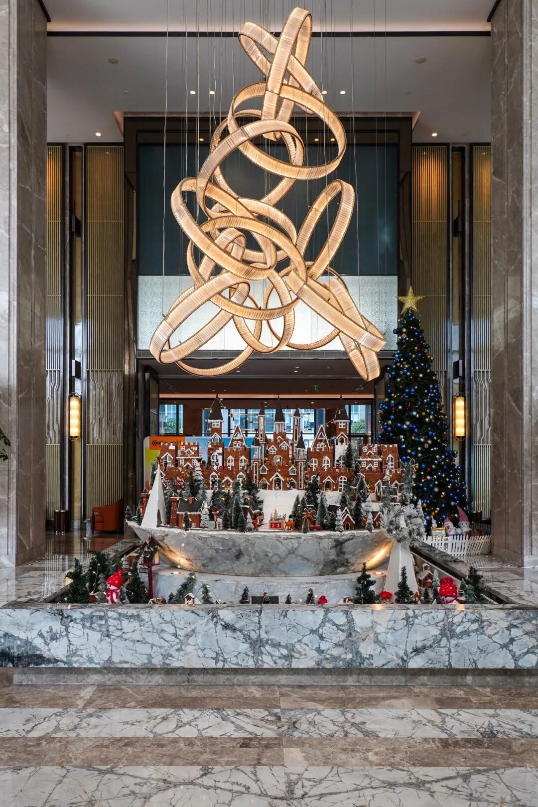 电梯厅也提前布置了圣诞场景,暖融融的壁炉旁,是缀满星光的圣诞树,另一边还有超大玩具熊依偎在侧,满室都是温馨治愈的节日氛围。