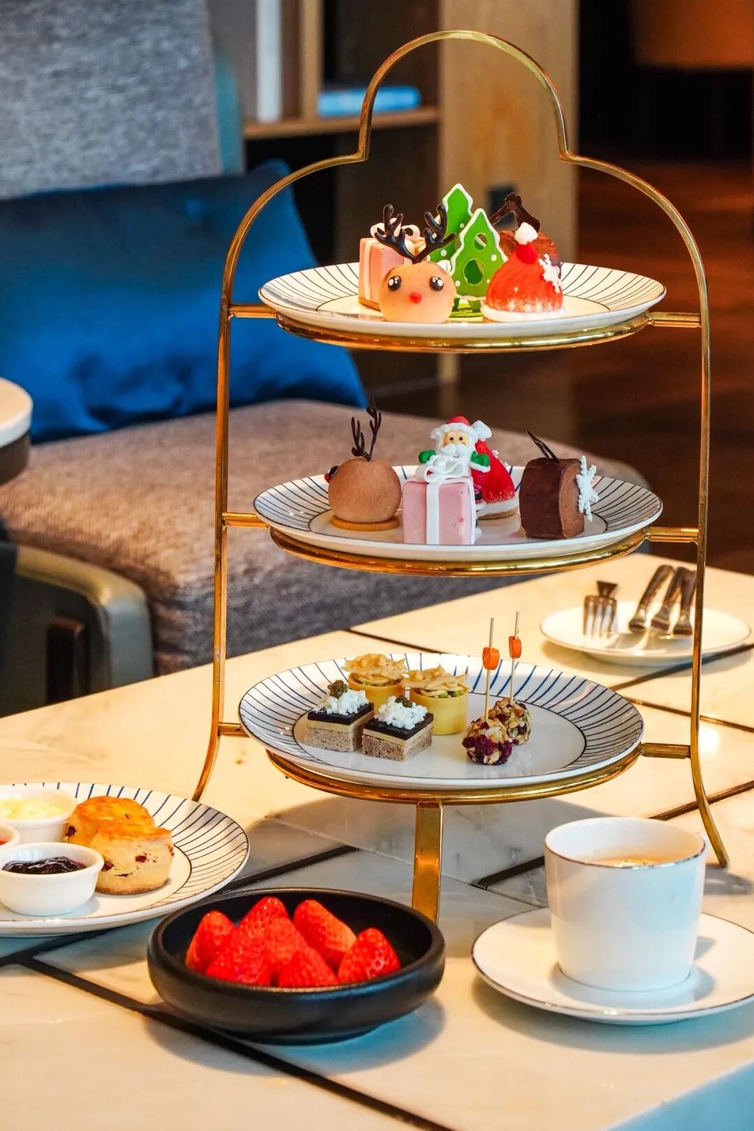行政房自带行政礼遇,所以下午就带着电脑去22楼的行政酒廊办公,顺便体验了高空下午茶,又是浓浓的圣诞气息。