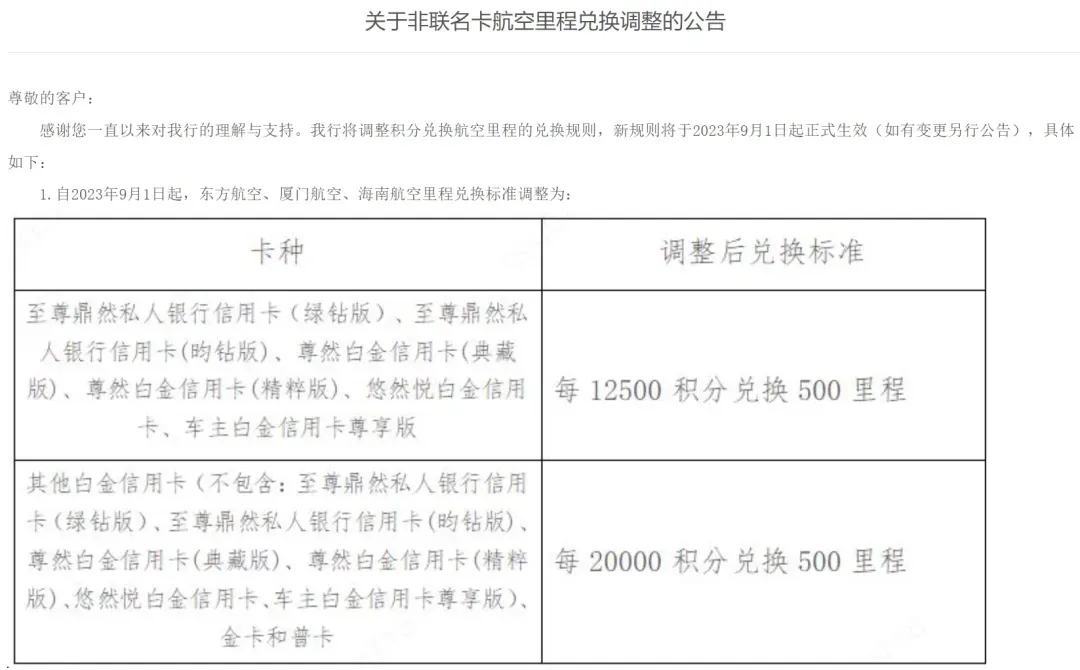 而调整后:小白金卡、金卡、普卡,默认40:1兑换里程,叠加5倍积分后为6.67:1:高端白金卡默认25:1兑换里程,叠加5倍积分后为4.17:1。