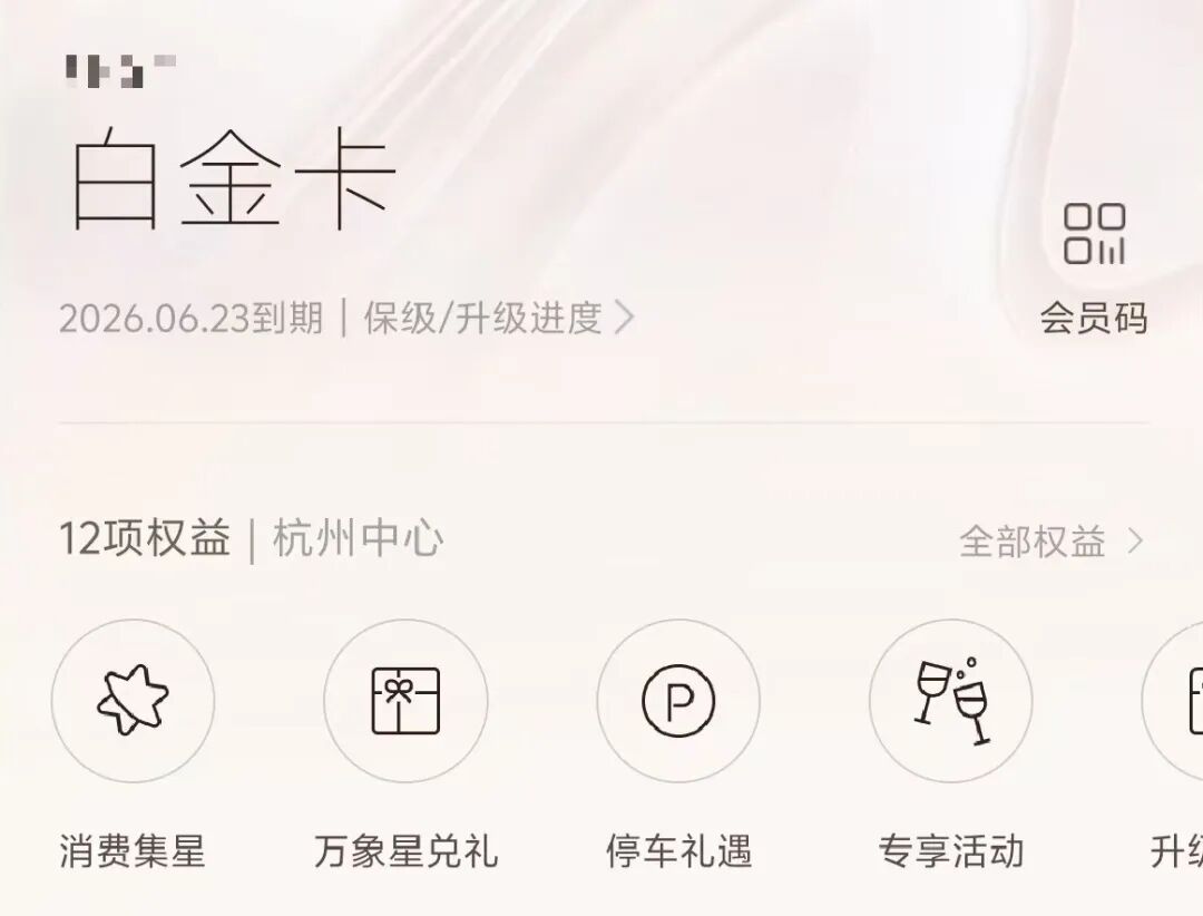 持卡人可匹配万象城对应会员(限1个万象城项目),6个月体验期内享该项目指定商户消费、停车等优惠。