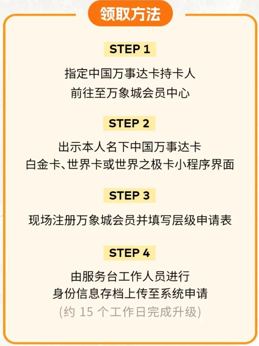 一句话概括:万事达世界之极卡、指定世界卡可匹配万象城白金卡;其它世界卡、白金卡可匹配万象城金卡。会籍有效期6个月。