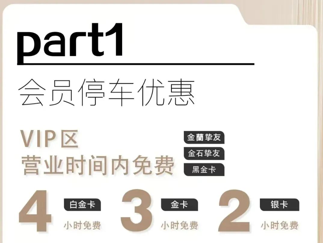 每家商场给与高级会籍的待遇有所不同,但停车免费这类基础权益基本都是可以享受的。