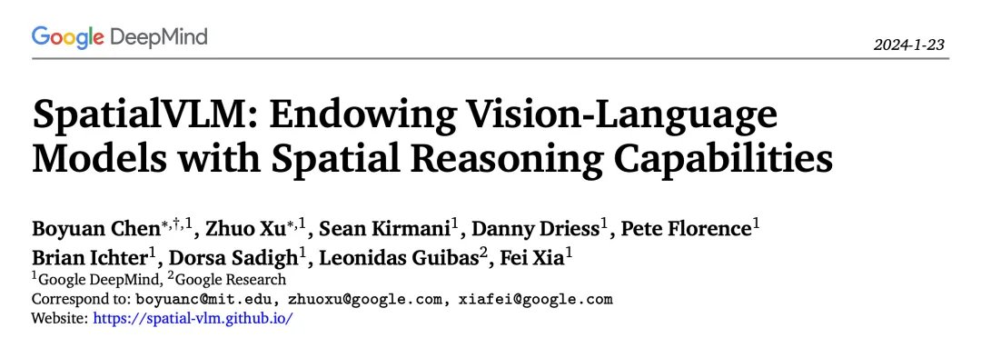论文标题:SpatialVLM: Endowing Vision-Language Models with Spatial Reasoning Capabilities