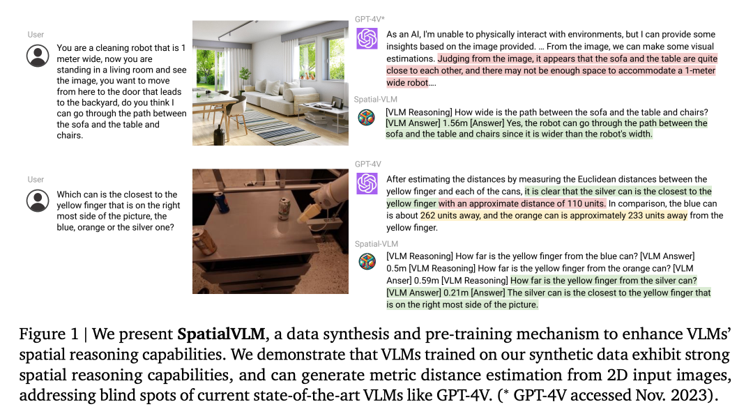 最近,谷歌提出了一种具备空间推理能力的视觉语言模型:SpatialVLM。