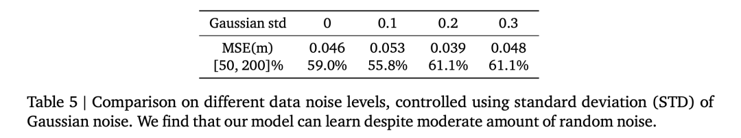 表 5 比较了不同的高斯噪声标准差对定量空间 VQA 中整体 VLM 性能的影响。