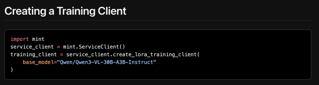 开发体验上:MinT 完全兼容 Tinker API,现有代码可快速适配,切换不同模型只需一行代码。目前已支持 Qwen、Kimi 等先进的开源大模型。