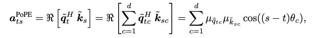 基于此定义,PoPE 的注意力分数计算公式变为: