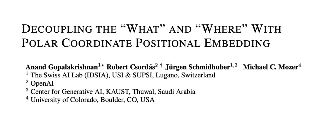 近日,IDSIA 实验室(Jürgen Schmidhuber 团队)联合 OpenAI 发布的最新论文提供了一个新视角。作者认为,RoPE 的旋转机制在数学上不经意间将词向量的内容信息(What)与位置信息(Where)耦合在了一起。