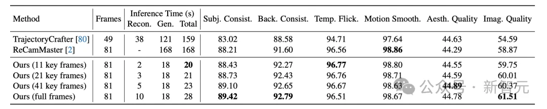 较大的相机运动下的渲染图像容易产生包括飞边像素和扭曲等现象。上图展示了 NeoVerse 单目退化模拟的必要性。如果没有在模拟出的退化样本上进行训练,生成模型往往会过于信任重建渲染中的几何伪影,导致出现「鬼影」效果或模糊输出。通过结合退化模拟,生成模型能够学会抑制这些伪影,并在遮挡或扭曲区域生成逼真的细节。