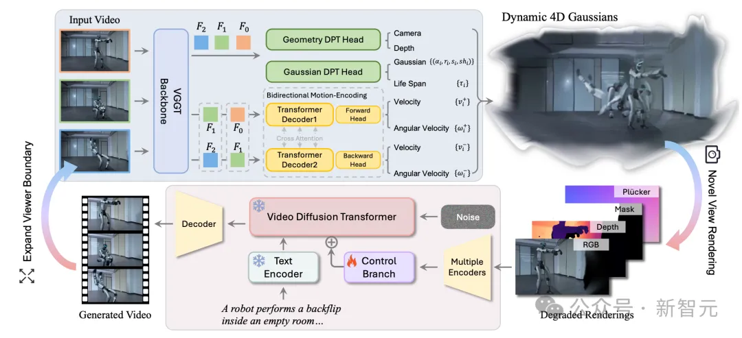 中科院和CreateAI推出NeoVerse,用百万单目视频训练4D世界模型。采用前馈式4DGS,双向运动建模,单目退化模拟等技术,效果超越现有方法,并在多个领域有应用前景。