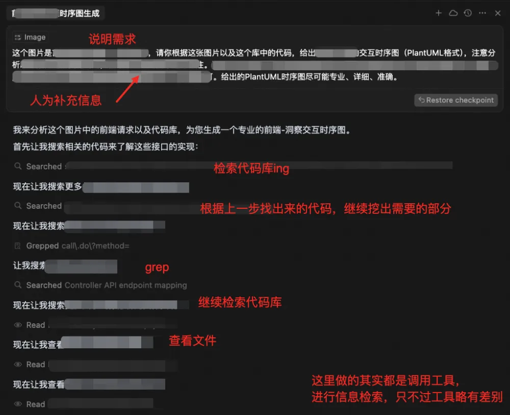工具调用后的 Token 累积:cursor 接收用户信息后开始调用 tools 获取更为详细的信息,并为问题回答做准备:总 Token = 初始输入 + 所有工具调用结果
