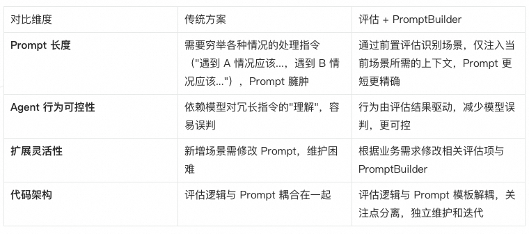 Prompt 动态组装:根据场景及前置评估结果动态注入上下文(经验、知识等)到 Prompt 中,灵活处理不同任务;
