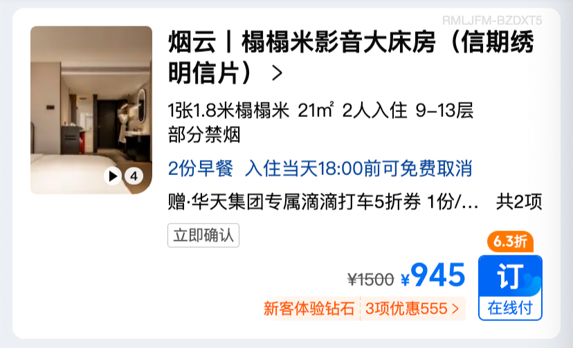 飞猪也有这款,已经开售,还可以抢到春节的核销库存