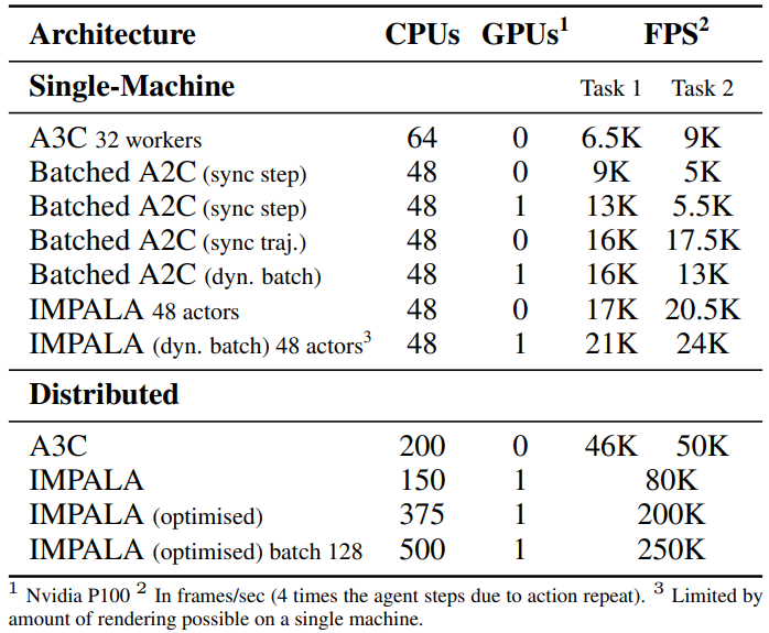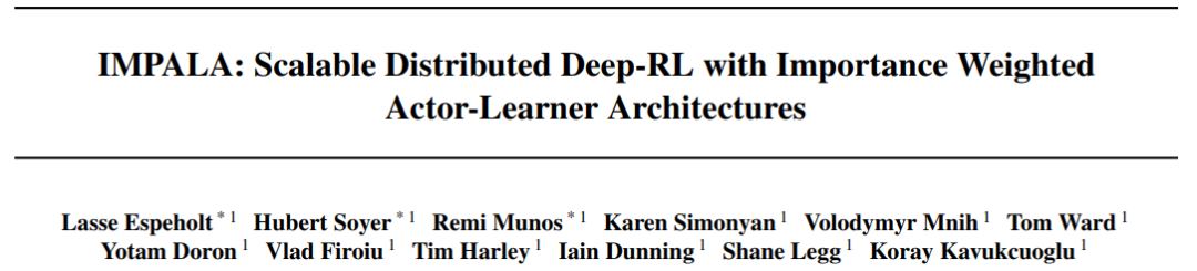 [2] IMPALA: Scalable Distributed Deep-RL with Importance Weighted Actor-Learner Architecture,https://arxiv.org/pdf/1802.01561.pdf